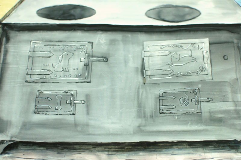 薪を入れる扉にはそれぞれネコとイヌが描かれていて、